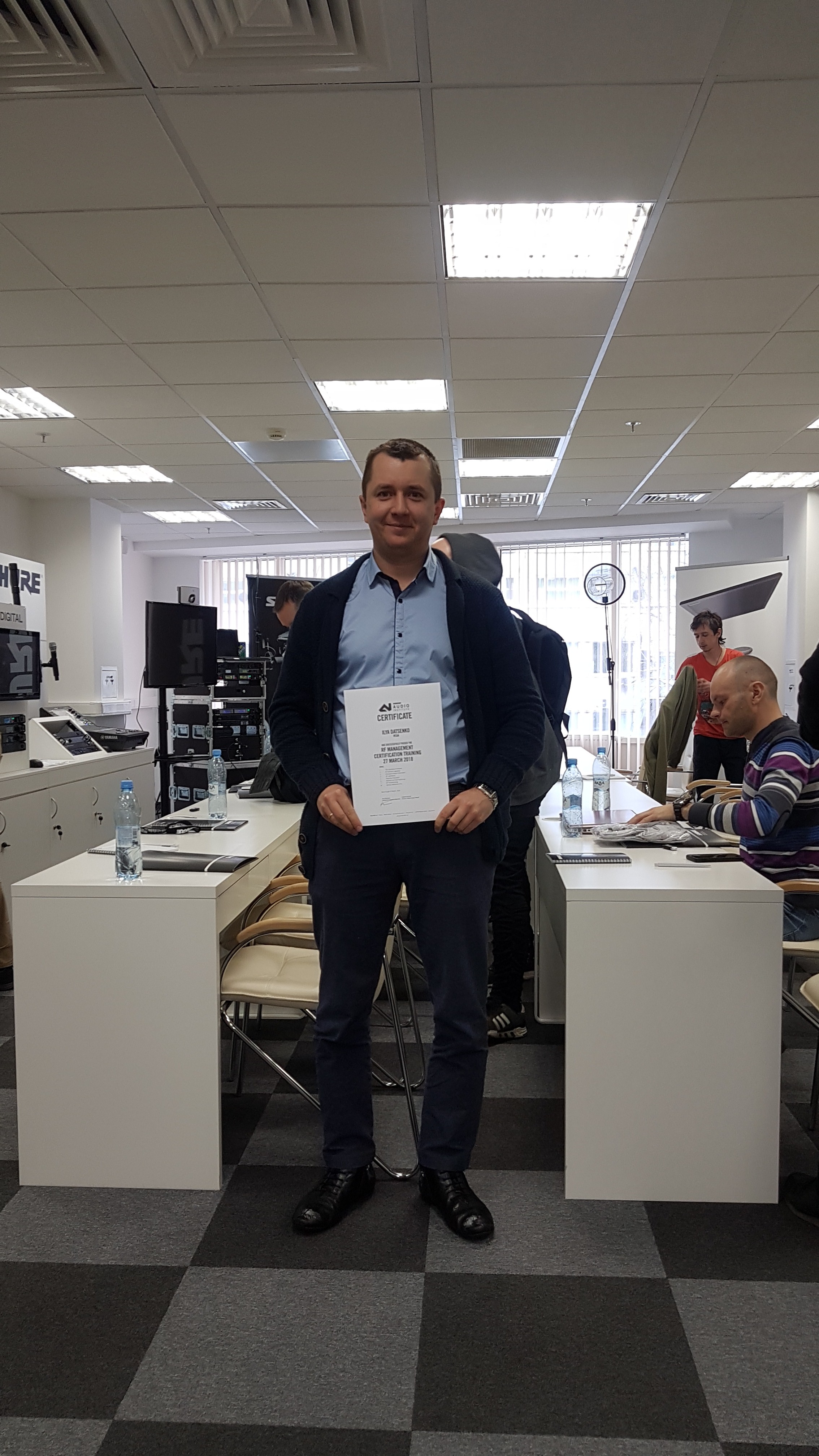 В конце марта, в представительстве Shure по Восточной Европе технический директор компании Илья Даценко прошёл сертификационные тренинги Shure Audio Institute по Радиочастотному менеджменту и Радиосистемам ULX-D. Обучение проходило три дня и включало все технические аспекты радиочастотного менеджмента и систем ULX-D/QLX-D.