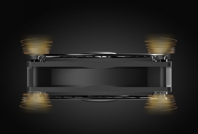 Сдвоенные шарикоподшипники в вентиляторах имеют тот же срок службы (67 тыс. часов), контролер скорости позволяет выбрать оптимальный режим работы, а сами вентиляторы могут устанавливаться, как горизонтально, так и вертикально. Модель оснащена восемью большими противовибрационными резиновыми ножками, что позволяет работать максимально бесшумно не создавая дополнительных вибраций и предотвращает скольжение по любой поверхности и не царапает ее. Два вентилятора позволяют установить систему таким образом, что бы организовать подачу холодного воздуха и отток горячего.