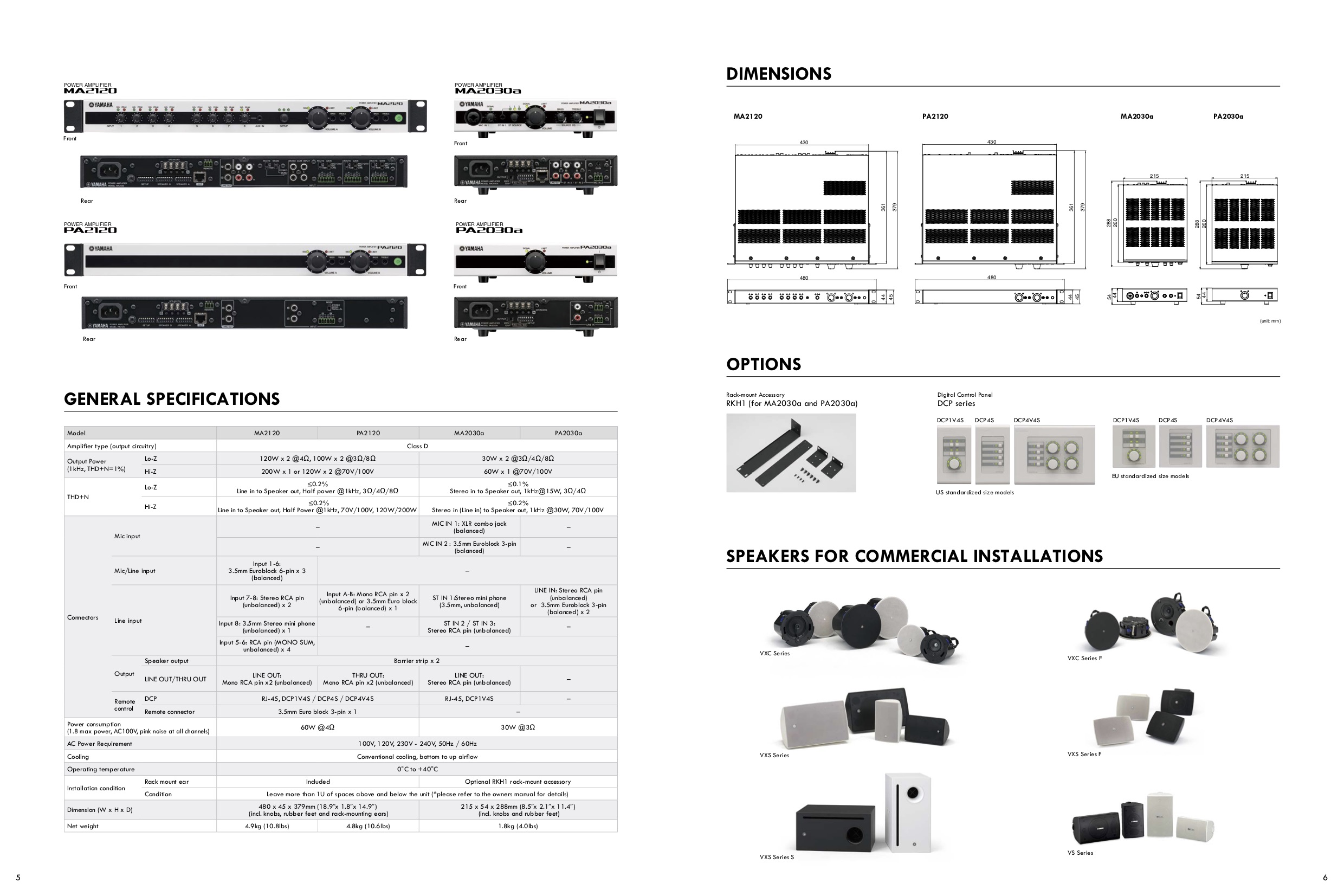 MA2030a и PA2030a также способны раскрыть весь потенциал звучания акустических систем Yamaha серий VXC и VXS, и стать основой для широкого спектра инсталляционных систем в зависимости от потребностей наших покупателей